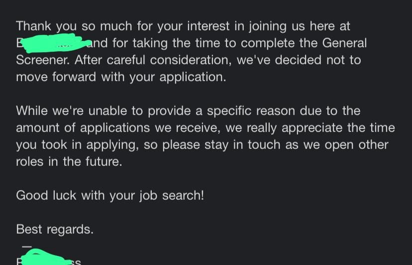 Yep! It’s a rejection letter! Probably the 2 millionths in a role (just exaggerating) We've all faced rejection probably in careers, business, education, relationships etc… Las las everybody will chop breakfast!